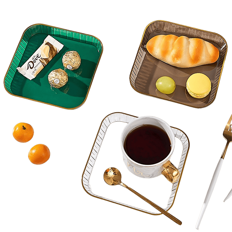 A set of mini stylish serving trays for snacks – 15.2cm x 15.2cm.